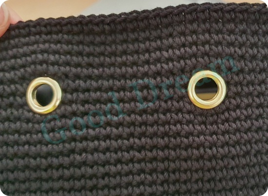 이 가방은 아일렛 구멍을 직접 만들어야 했고