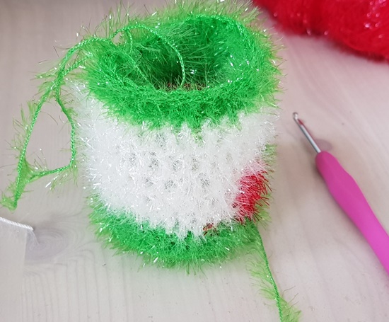 2단은 한코당 긴뜨기 2코 늘려뜨기를
