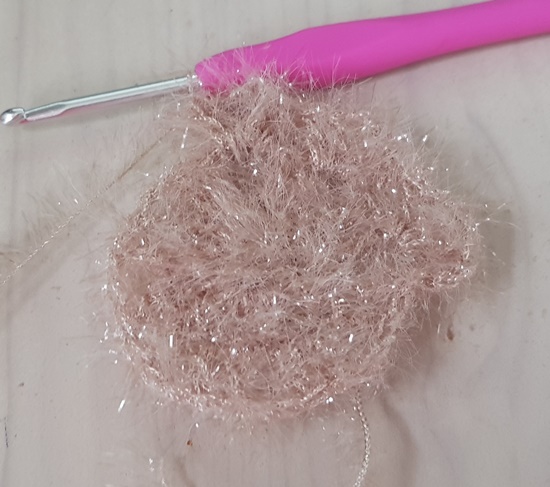 길게 빼두었던 실에 코바늘을 넣어